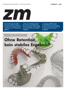 EDITORIAL | 3 Wenn Evidenzen immer wieder infrage gestellt werden alternative Tabak- und Nikotinprodukte von einer Expertin beleuchten und haben ein Interview mit einer Krebsforscherin geführt. Außerdem sprachen wir mit dem Vorsitzenden der Kassenzahnärztlichen Bundesvereinigung, Martin Hendges, über den „Aktionsplan 2025 bis 2030 für eine wohnortnahe und flächendeckende vertragszahnärztliche Versorgung“. Er berichtet, welches Echo die Vorschläge der KZBV in der Politik bisher hervorgerufen haben und wie man den Aktionsplan weiter voranbringen will. Darüber hinaus stellen wir kompakt die neue S3-Leitlinie „Stilldauer und Interventionen zur Stillförderung“ vor. Insgesamt 26 wissenschaftliche Fachgesellschaften und Berufsgruppen haben sich an der Erarbeitung von zwei neuen Empfehlungen zur Stilldauer beteiligt. Die neue Leitlinie enthält zudem differenzierte Einschätzungen zu den Auswirkungen des Stillens auf die Mund- und Zahngesundheit – unter anderem mit Blick auf die Mundatmung, ECC und die Okklusion. Viel Spaß bei der Lektüre Sascha Rudat Chefredakteur Manche Diskussionen tauchen in regelmäßigen Abständen wieder auf, auch wenn die Sachlage eigentlich klar zu sein scheint. Schwierig wird es immer dann, wenn eine eindeutige Evidenzlage angezweifelt wird – was natürlich richtig und legitim wäre, wenn es neue Evidenzen gäbe. Beim Thema Fluorid sind nicht zuletzt durch die Entwicklungen in den USA, wo eine wissenschaftskritische Regierung einen kruden Kulturkampf gegen gesetzte Standards führt, neue Diskussionsschleifen entstanden, ohne wissenschaftlich fundierte neue Erkenntnisse. Und hierzulande hat es der Versuch einer vermeintlichen Graswurzel-Gruppierung, Fluorid in Zahnpasta in der Öffentlichkeit zu diskreditieren, trotz mäßigen Erfolgs in die Publikumsmedien geschafft. Ein bekanntes deutsches Nachrichtenmagazin hat sehr klar recherchiert, dass hinter der Pseudo-Bürgerinitiative knallharte wirtschaftliche Interessen eines Herstellers von fluoridfreier Zahnpasta stecken. Wir in der zm stellen ja mit schöner Regelmäßigkeit den aktuellen wissenschaftlichen Sachstand zum Thema Fluorid vor, so dass Sie, liebe Leserinnen und Leser, stets auf dem Laufenden sind. So könnten wir eigentlich über derartige Initiativen müde lächeln. Nur leider, leider lassen sich insbesondere junge Eltern gerne von derartigem Unfug verunsichern, mit dem Sie dann in den Praxen konfrontiert werden. Wichtige Informationen zum Thema finden Sie unter anderem auch auf der Website der Bundeszahnärztekammer. Damit können Sie für Klarheit sorgen. In unserer Titelgeschichte beschäftigen wir uns diesmal mit dem Thema Retainer in der Kieferorthopädie. Zwar herrscht Einigkeit darüber, dass Retentionsmaßnahmen ein zentraler Bestandteil kieferorthopädischer Therapiekonzepte und besonders für die langfristige Stabilität im Frontzahnbereich relevant sind. Doch darüber hinaus werden Art, Dauer und Intensität der Retention durchaus kontrovers diskutiert. Unsere Titelgeschichte will deshalb einen Überblick über die aktuelle Evidenz geben. Dabei werden Retainer-Strategien im Hinblick auf deren Alltagstauglichkeit diskutiert. Zudem werden aber auch weitere Aspekte wie die Rolle der Patientencompliance sowie typische Komplikationen und Anforderungen an die Nachsorge betrachtet. Alles zusammen ergibt Konsequenzen für die Planung, die Kontrolle und die Kommunikation von Retentionskonzepten. Daneben finden Sie in diesem Heft ein Artikel-Paket zum Thema Rauchen und Mundgesundheit. Mit ihrem aktualisierten Positionspapier will die BZÄK Rauchen als bedeutenden Risikofaktor für die Mund- und Allgemeingesundheit stärker in den Fokus der präventions- und gesundheitspolitischen Diskussionen zu rücken. Ziel ist es natürlich, dadurch den Tabakkonsum zu senken. Zusätzlich lassen wir Foto: Lopata/axentis